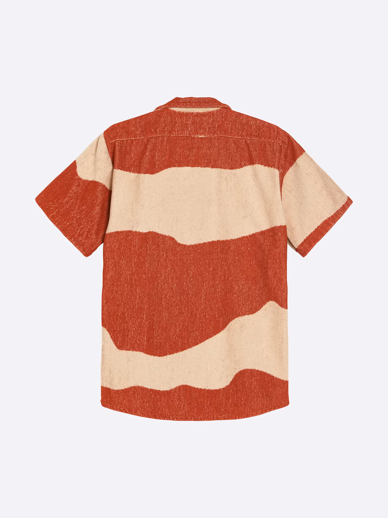 De brända röda tonerna i Amber Dune mönstret för dina tankar till heta sanddyner dränkta i solens sista strålar. Den kortärmade skjortan är vävd i 100% kraftig bomullsfrottés om låter din hud andas. Skjortan har en resortkrage och en avslappnad passform.